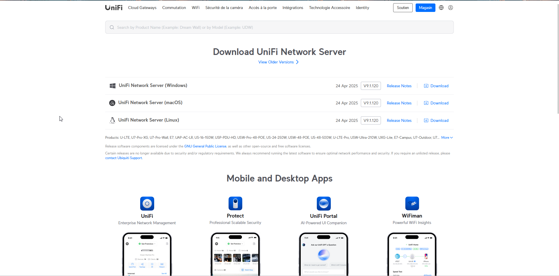 J'ai récupéré la dernière version du contrôleur UniFi sur le site officiel Ubiquiti.