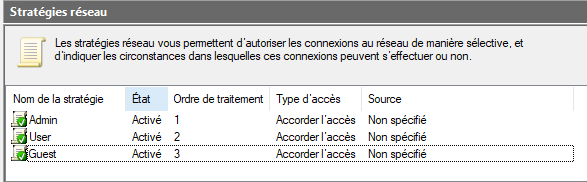 Le serveur RADIUS est directement relié à notre Active Directory, ce qui permet une authentification centralisée et un contrôle d’accès dynamique selon le profil des utilisateurs.
